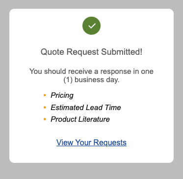 5. ¡Felicitaciones! Su solicitud de cotización ya ha sido enviada. Recibirá un correo electrónico poco después de que su representante de ventas haya terminado con su cotización.
